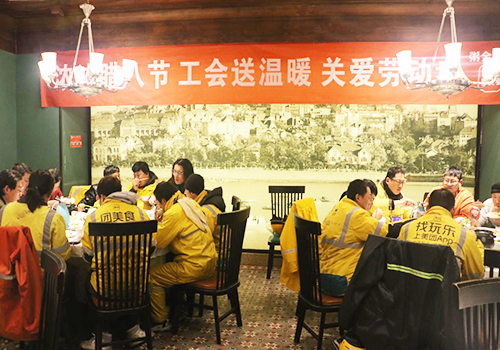 “今天下雪天很冷,市南工會把我們環衛工請進屋里,讓我們在臘八節喝上一碗熱乎乎的八寶粥,不僅身體暖和了,心也暖和了。”郭師傅捧著臘八粥說。