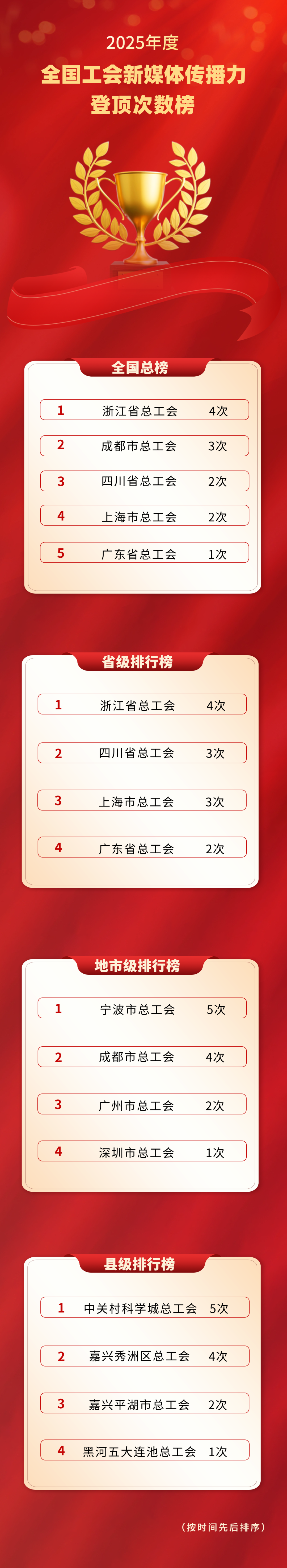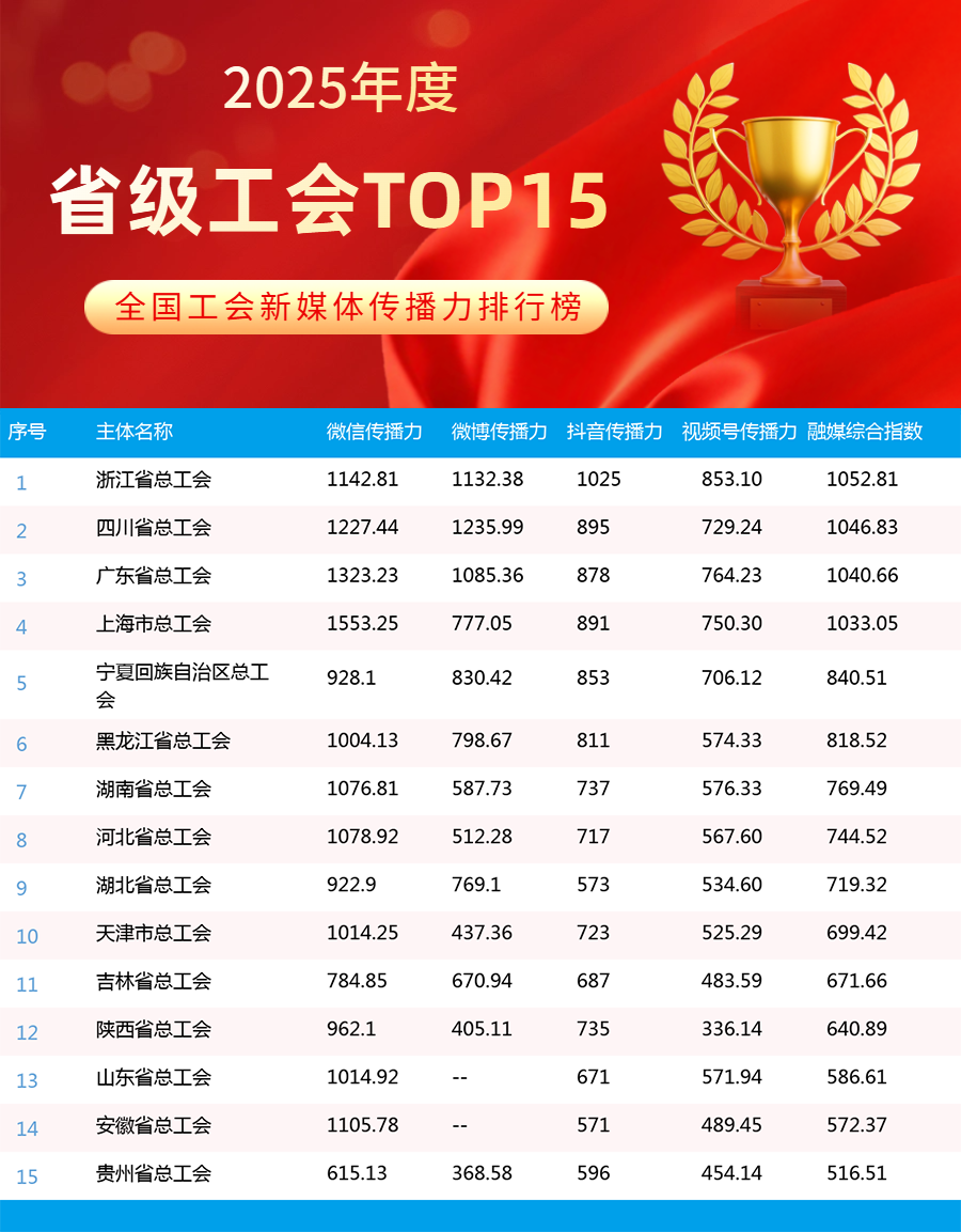 今天,我們發(fā)布2025年度年榜,對全年工作進(jìn)行梳理與總結(jié)。2026年,我們將一如既往,助力各級工會新媒體傳播力邁上新臺階。