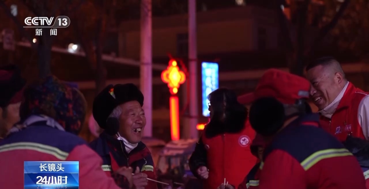 十幾張餐桌圍坐了120多名環(huán)衛(wèi)工人,嚴(yán)寒與疲憊在這一刻蕩然無存,又是一個(gè)溫暖的清晨。