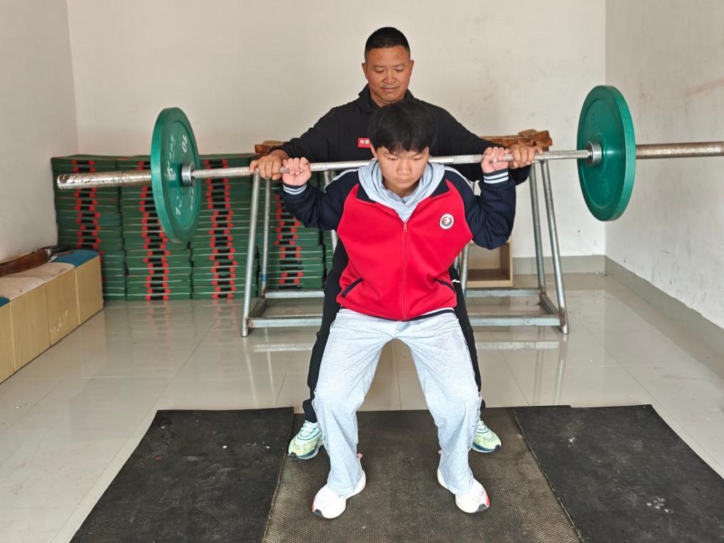 王斌在指導學生練習深蹲。新華社記者 鄭明鴻 攝