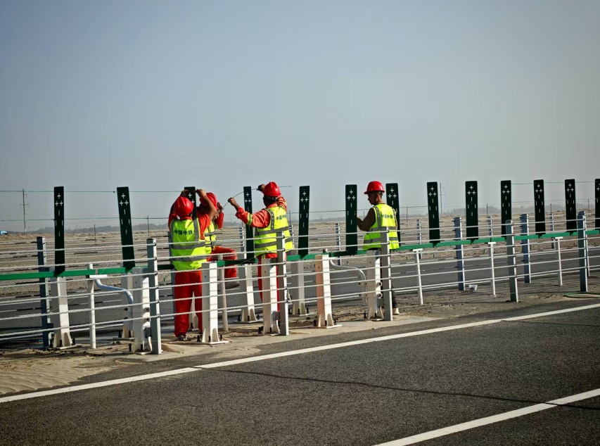 冬季道路安全隱患具有隱蔽性、突發性特點,項目部構建“全方位、全天候、全覆蓋”的巡查體系。在塔克拉瑪干沙漠南緣的G0612若民高速,530.2公里路段常年受寒風冰雪影響,車爾臣河大橋等空曠路段易形成薄冰暗區,巡查隊員每日凌晨便身著防寒工服出發,手持測溫儀每兩小時監測橋面溫度,同步排查護欄變形、防沙柵欄移位等隱患。