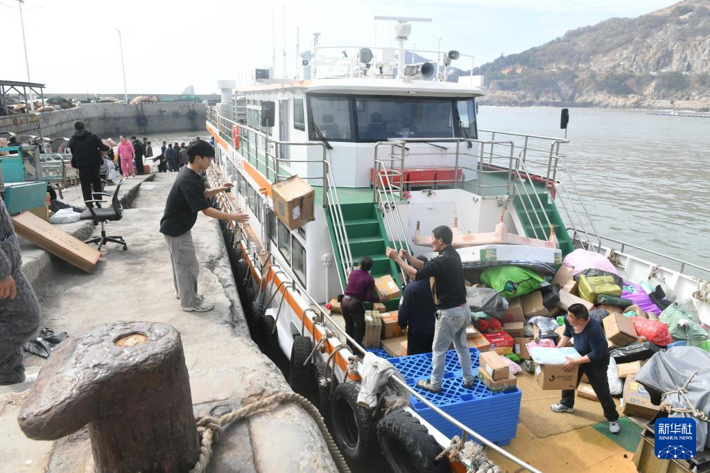 1月26日,載著快遞郵件的客貨郵融合班船停靠在霞浦縣海島鄉的西洋島碼頭。新華社記者 林善傳 攝