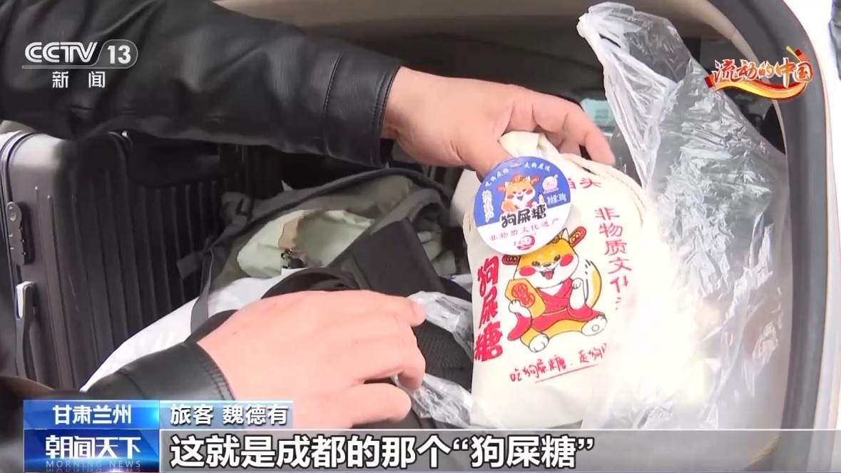 旅客 魏德有:我是從新疆石河子市一路自駕到成都,然后現在準備回,最主要就是去成都的熊貓基地看大熊貓。還有買的禮物,這些就是成都的“狗屎糖”,還有伴手禮、冰箱貼這種。