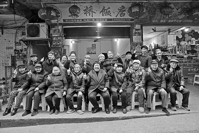 大橋飯店開始接收老人“搭伙”時(shí),張成書的5個(gè)孩子都已長(zhǎng)大離家,她和丈夫也一直沒有跟他們提起過這件事。三女兒周詩凈記得,那時(shí)候她偶爾從江津城區(qū)回家,看到老人們?cè)诘昀锍燥垼恢币詾榫褪瞧匠5拇迕窬鄄汀?/p>