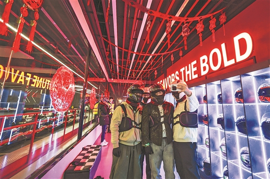 2月12日,游客在沈陽糧倉文化創(chuàng)意產(chǎn)業(yè)園準備體驗室內(nèi)卡丁車項目。